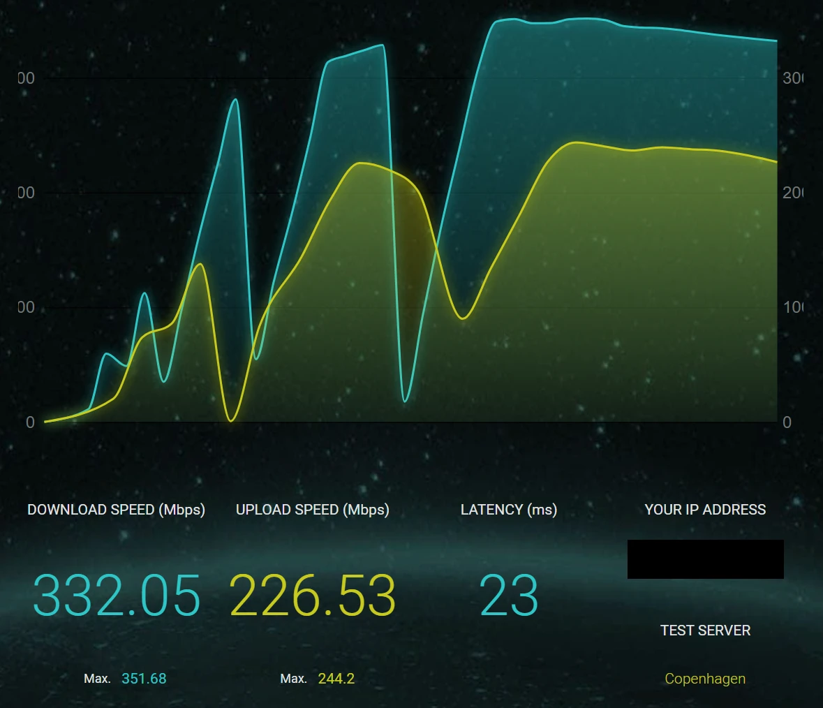 - Testresultater kan variere, hvis du vælger forskellige testpunkter/servere